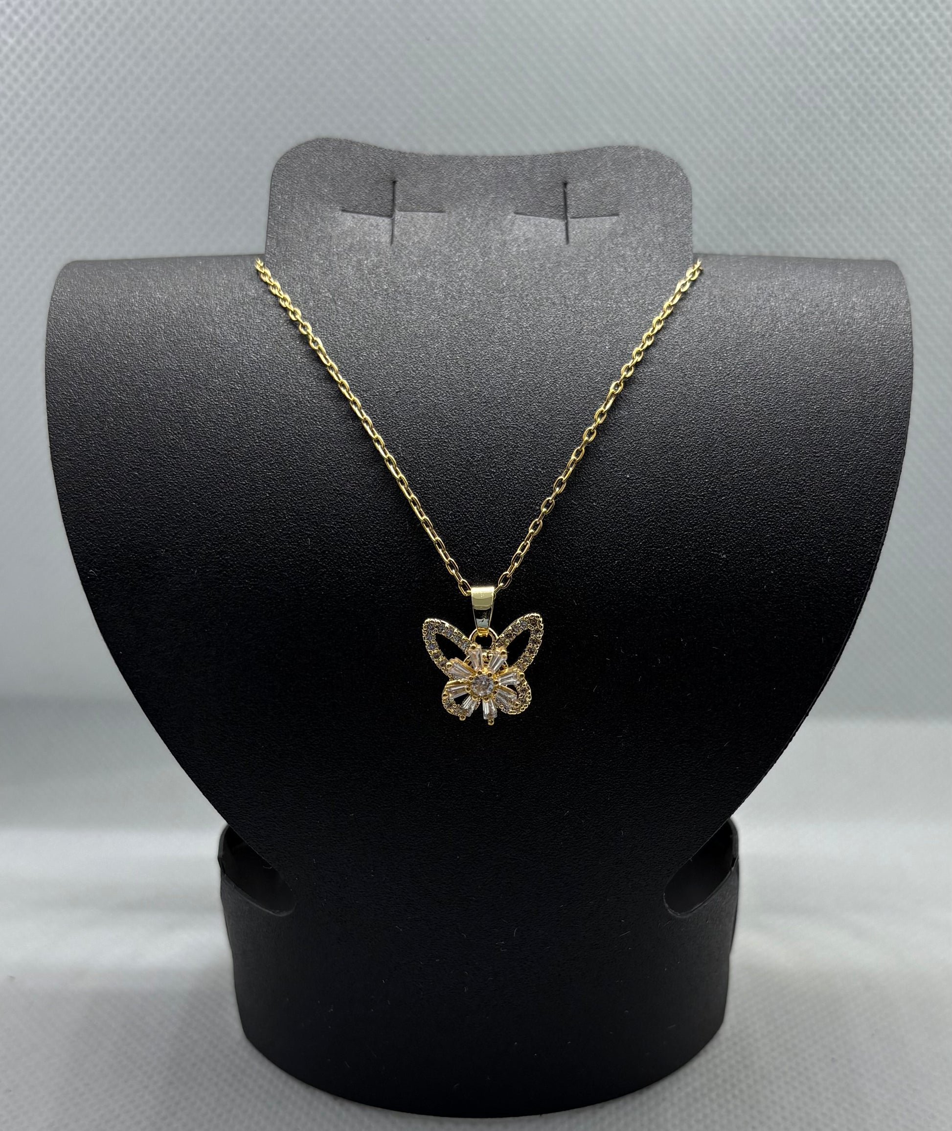 Gargantilla Mariposa con Flor chapa de oro 50cm