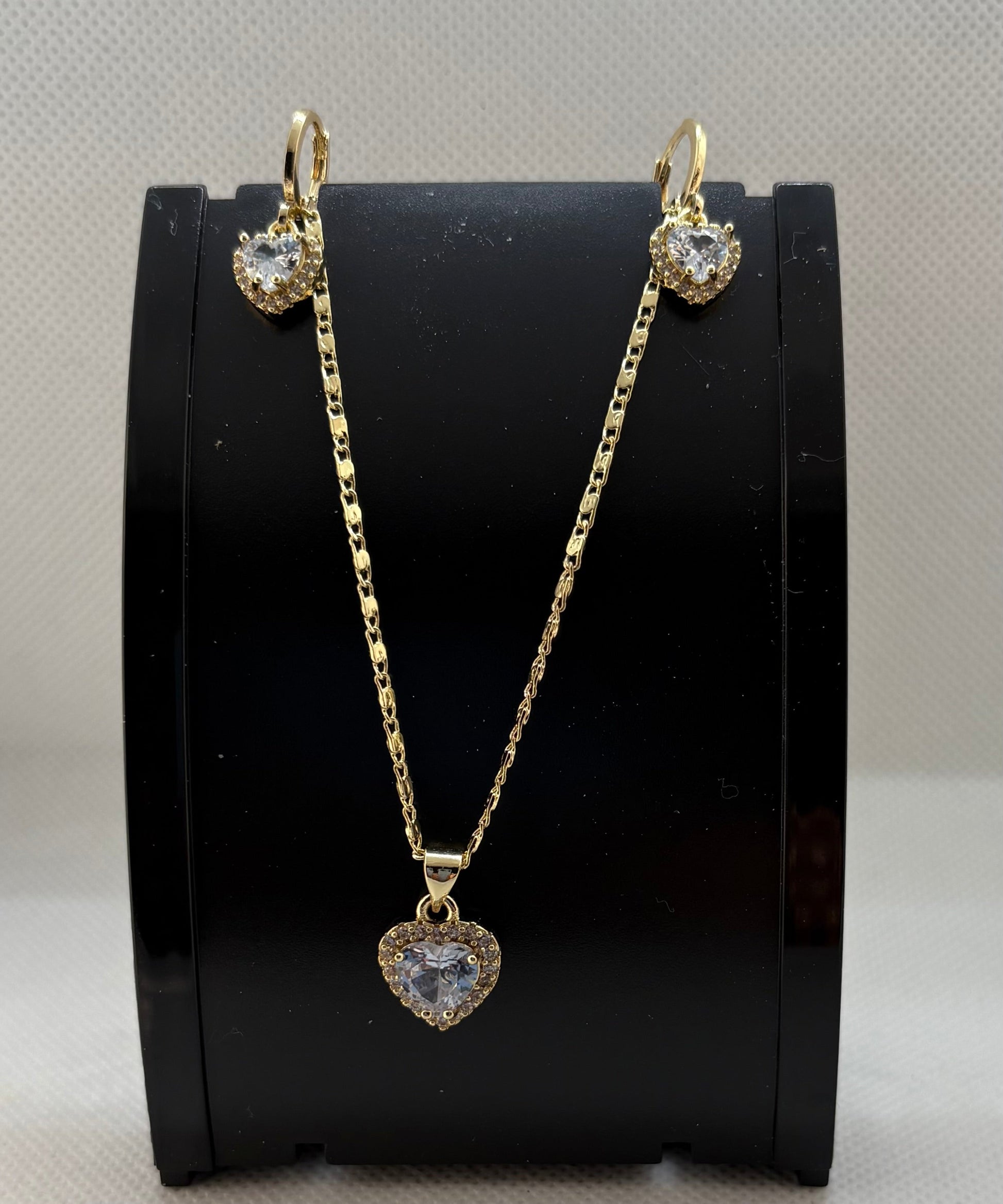 Juego de Dije con Cadena y Aretea chapa de Oro 50cm